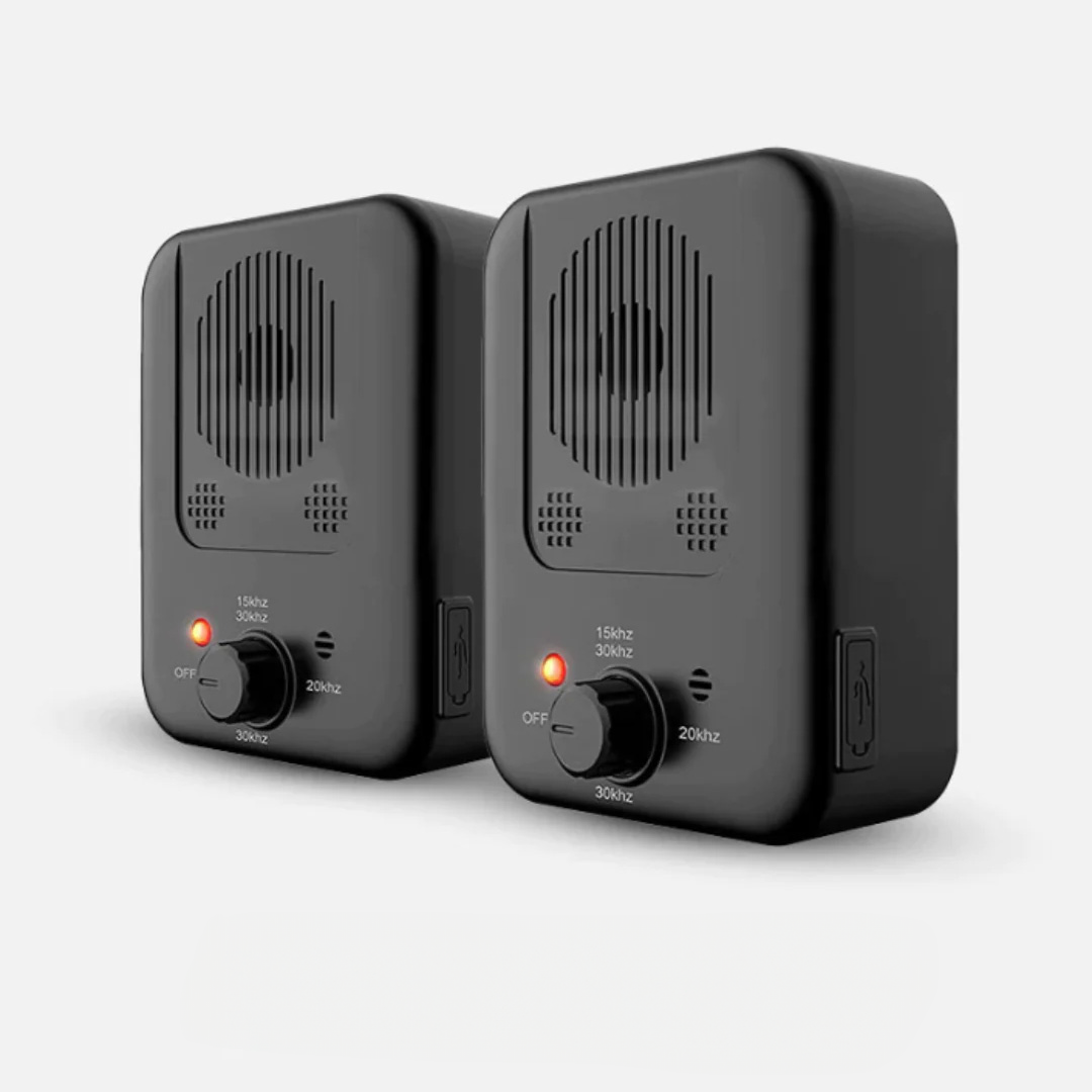 1. Wanneer je blaffende hond of hond van de buren zich binnen 15 meter van de vervroegde blafsensor bevindt, pikt hij de frequentie van de blaf op en zendt hij een ultrasoon geluid uit met een hoge toon dat door de hond gehoord wordt.